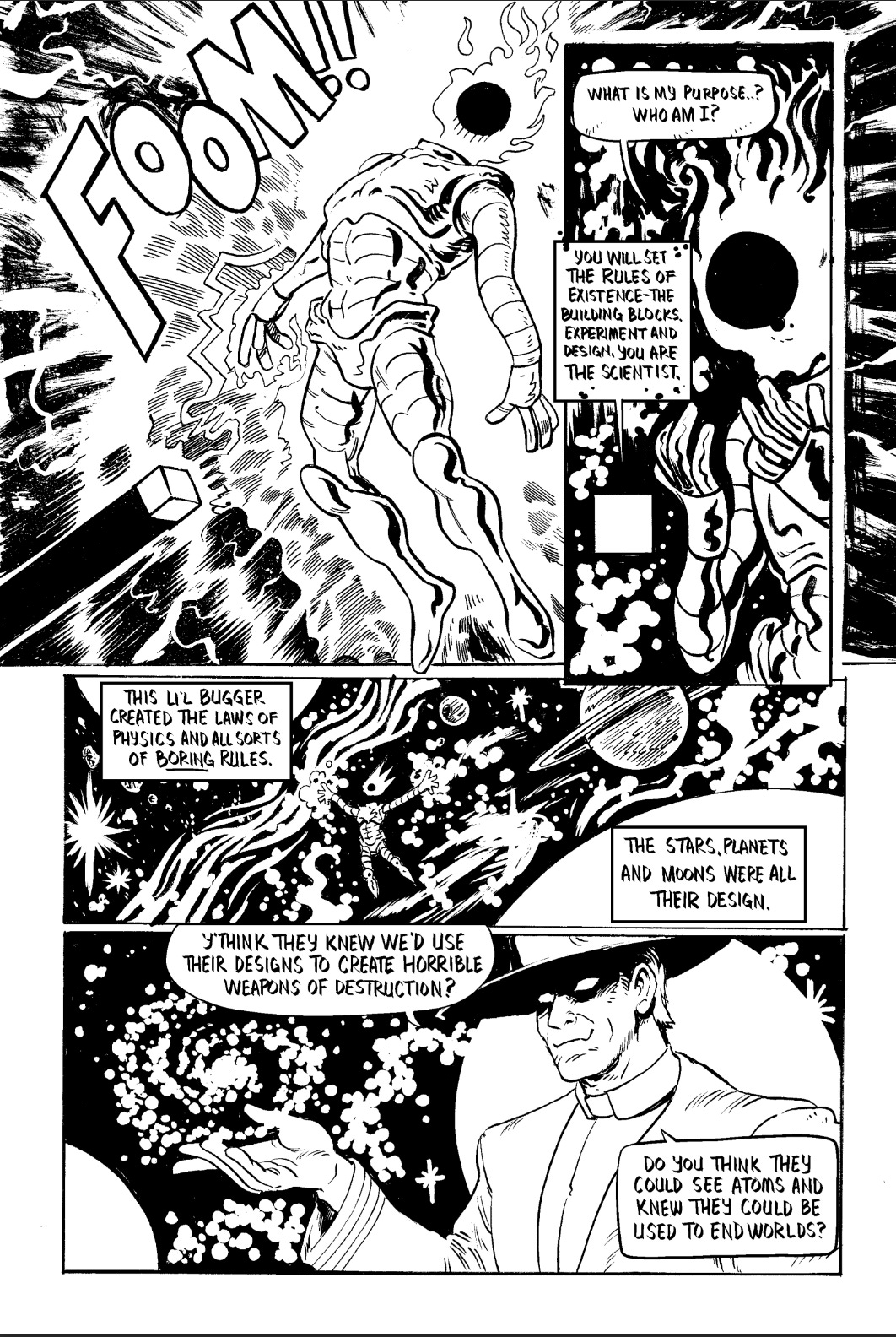 Now that we have all the boring stuff t out of the way let’s look at some cool stuff! This is page four of the first story in Tales From Exit 56: DREAMS OF THE CREATOR.